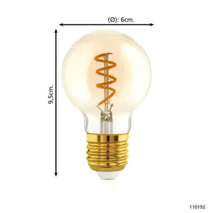 La Eglo LED Globe E27 Filamento Ambra 4W 145lm - 820 Bianco Molto Caldo | Dimmerabile - Sostitutiva 15W è la perfetta sostituzione per la tua lampada convenzionale 15W con attacco E27 grazie alla sua tecnologia LED. Passare a LED ti offrirà tanti vantaggi!