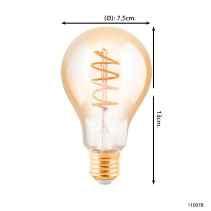 Descrizione Eglo LED Pera E27 Filamento Ambra 4W 245lm - 820 Bianco Molto Caldo | Dimmerabile - Sostitutiva 25W