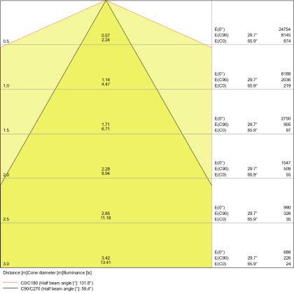 Il codice colore è una combinazione di resa cromatica (CRI) e colore della luce (Kelvin). La prima cifra indica la resa cromatica (1 = resa del colore molto bassa, 9 = massima resa del colore), mentre la seconda e la terza si riferiscono al colore della luce. Esempio: il codice colore 830 indica una buona resa cromatica (8) e luce bianca calda (3000K). |