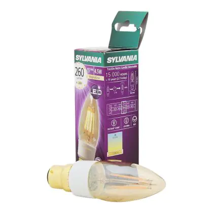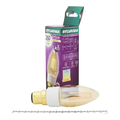 La Sylvania ToLEDo B22 Candela Filamento Oro 4.5W 260lm - 817 Magmaglow | Sostitutiva 40W è la sostituzione perfetta per la tua lampada convenzionale 40W B22. Sostituire con il LED ti offrirà molti vantaggi.
